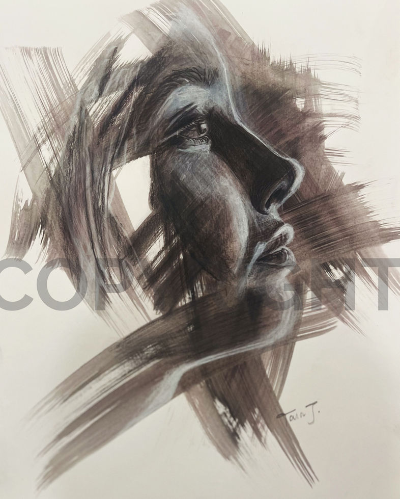This portrait was the artist’s first charcoal drawing she’s done since high school. This was primarily an experimental piece that she ended up falling in love with.